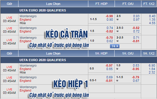 * Chốt kèo trận Montenegro vs Anh (02h45)