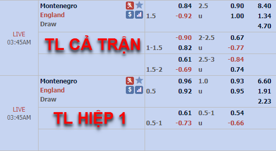 THAM KHẢO: Anh (-1 1/4) cả trận