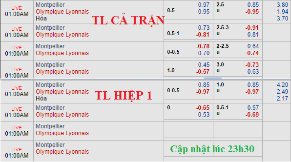 Chốt kèo trực tiếp trận Montpellier vs Lyon (0h00):