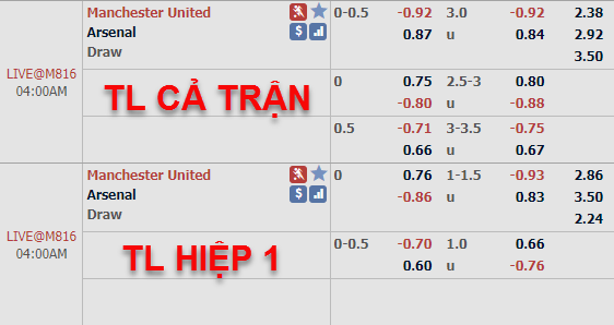 CHỐT KÈO TRỰC TIẾP trận MU vs Arsenal (03h00)