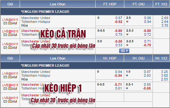 * Chốt kèo trận MU vs Tottenham (02h00)