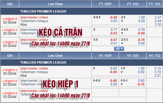AEGoal.net chốt kèo trực tiếp trận MU vs Tottenham sau khi dựa trên tính toán, chuyển động về kèo châu Á và đội hình ra sân của 2 đội.