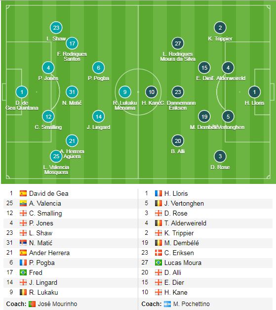 Ở trận này, MU tiếp tục không có sự phục vụ của Sanchez ngay từ đầu và HLV José Mourinho cũng bố trí 1 đội hình khá thấp dù được chơi trên sân nhà cũng cho thấy ý đồ chọn lối chơi phòng ngự phản công của đội bóng này. Tuy nhiên trong hoàn cảnh mà từ hậu trường đến ngoài sân cỏ của đội bóng này đang có vô số những vấn đề, hy vọng vào những ý đồ của Người đặc biệt là gần như không có. Hơn nữa, đối thủ lần này của họ là Tottenham chứ không phải như những Leicester City hay Brighton như vừa qua, vì thế niềm tin cho đội chủ sân Old Trafford đang rất mong manh.