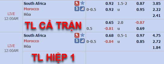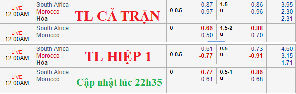 Tuy ra sân với đội hình khá mạnh nhưng Morocco vẫn không có bước đột phá về kèo chấp, thậm chí điểm ăn cho cửa trên của họ so với trưa nay còn cao hơn. Nhưng điểm nhấn ở cuộc chiến này lại là mốc tài xỉu, mức 1 3/4 vốn dĩ đã thấp lại được kéo về chỉ còn 1 1/2. Với tỷ lệ như vậy thì nên tin vào một cuộc chiến khan hiếm bàn thắng.