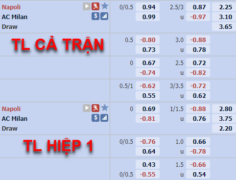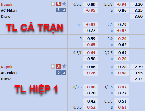 Diễn biến trên sàn giao dịch châu Á đem lại nhiều lợi thế cho lựa chọn cửa trên trận này. Xét về thực lực Napoli hoàn toàn ngang bằng thậm chỉ nhỉnh hơn AC Milan ở thời điểm này và họ cũng đang có được phong độ tương đối ổn định những vòng đấu gần đây, với lợi thế sân nhà chắc Napoli sẽ tạo ra nhiều khó khăn cho AC Milan.