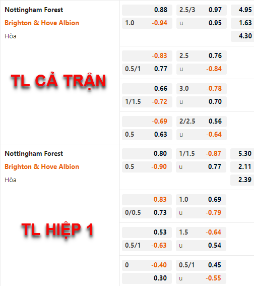 AEGoal chốt kèo bóng đá trực tiếp trận Nottingham vs Brighton diễn ra lúc 01h30 ngày 27/4/2023 trong khuôn khổ giải Ngoại hạng Anh sau khi dựa trên tính toán, chuyển động về kèo châu Á và đội hình ra sân của 2 đội.