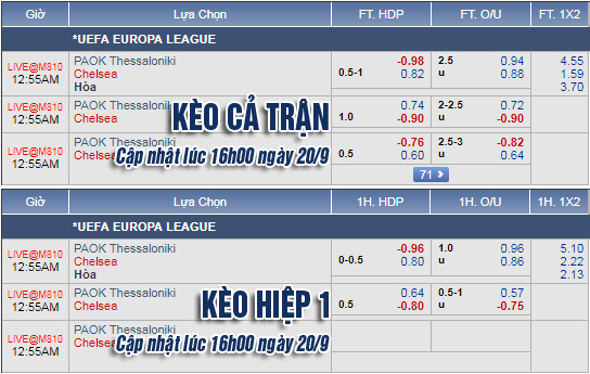 CHỐT KÈO TRỰC TIẾP trận PAOK vs Chelsea (23h55)