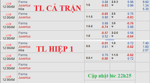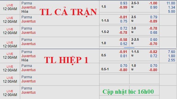 AEGoal.net chốt kèo trực tiếp trận Parma vs Juventus diễn ra lúc 23h00 ngày 24/8 sau khi dựa trên tính toán, chuyển động về kèo châu Á và đội hình ra sân của 2 đội.