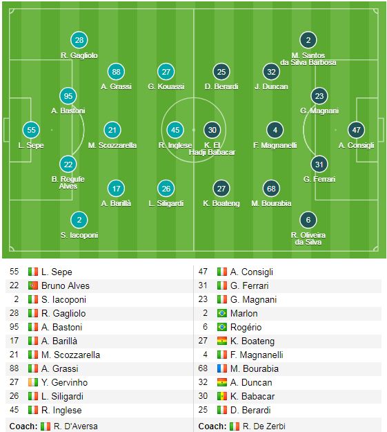 Với lợi thế sân nhà, Parma không ngần ngại ra sân với đội hình tấn công 4-3-3, trong đó đáng chú ý là cả 2 cây săn bàn chủ lực là Gervinho và Inglese đều có mặt. Bên phía đối diện, với thế cửa trên, Sassuolo cũng cho thấy tham vọng giành 3 điểm của mình khi tung ra đội hình tương tự 4-3-3 với bộ 3 sáng giá trên hàng công là Berardi, Babacar và Boateng. Với cách bố trí đội hình của 2 đội, khả năng cho 1 trận cầu cởi mở đang là rất sáng nước.