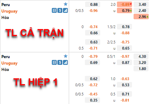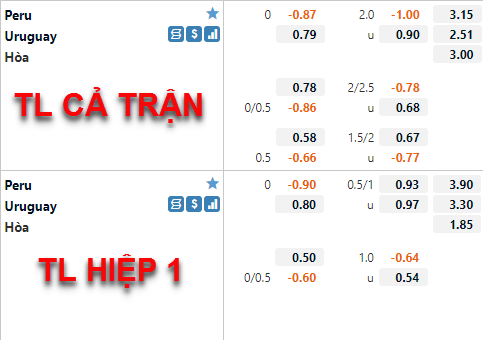 Diễn biến trên thị trường châu Á cho thấy giới đầu tư nghiêng về phía Uruguay trận đấu này. Mặc dù đã có kết quả rất tốt tại Copa America vừa qua nhưng thành tích, nhưng việc Peru vào tới bán kết của giải đấu cũng do khá nhiều may mắn khi họ không phải đối đầu với đội thủ mạnh. Trong khi đó Peru đã có phong độ tồi tệ ở vòng loại World Cup và hiện tại họ không có chiến thắng ở 7 trận sân nhà gần nhất. Rõ ràng đây sẽ là trận đấu không dễ dàng cho đội chủ nhà khi phải đối đầu với Uruguay
