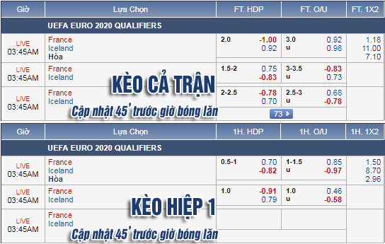* Chốt kèo trận Pháp vs Iceland (02h45)