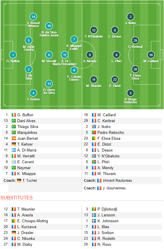 PSG: Presnel Kimpembe, Gianluigi Buffon, Colin Dagba (chấn thương); Adrien Rabiot, Lass Diarra (không đăng ký).