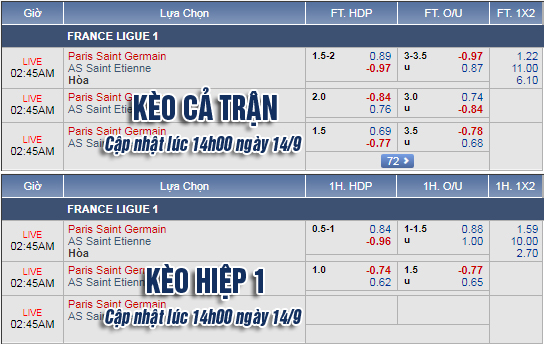 AEGoal.net chốt kèo trực tiếp trận PSG vs St Etienne sau khi dựa trên tính toán, chuyển động về kèo châu Á và đội hình ra sân của 2 đội.