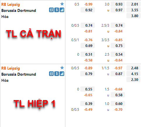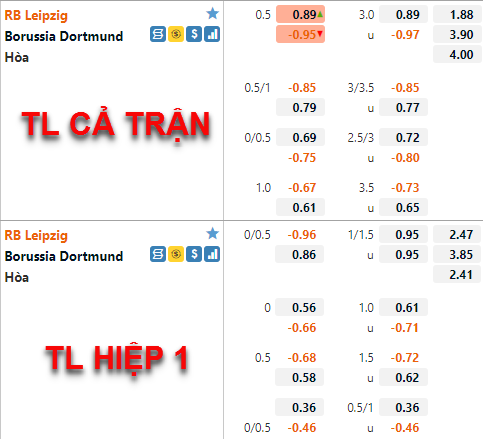 Tỷ lệ của Leipzig tiếp tục có xu hướng tăng điểm thời gian vừa qua. Hiện tại mốc chấp chính của đội chủ nhà vẫn được duy trì ở mức 1/2 nhưng điểm ăn của cửa trên đã được điều chỉnh giảm khá khiều so với lần chúng tôi cập nhật trước đây. Tỷ lệ tài xỉu của trận đấu cũng có diễn biến gần tương tự, mốc 3 hoà vẫn là mốc chính và điểm ăn cửa tài được điều chỉnh giảm.