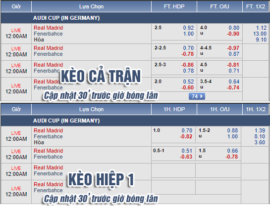 Những diễn biến mới nhất trên sàn giao dịch châu Á đang chứng kiến đà tăng mạnh mẽ ở kèo chấp của Real Madrid khi mức kèo chấp 2 hoà ở thời điểm mới niêm yết đã được đẩy lên thành 2 đứt cùng thang điểm ăn không quá chênh lệch. Với sự dịch chuyển này, rõ ràng đội bóng Hoàng gia Tây Ban Nha đang tạo được sự tin tưởng rất lớn ở cuộc đụng độ tới đây. Trong khi mốc tổng bàn thắng cả trận vẫn duy trì ở mức 4 hoà cùng điểm ăn hạ thấp cho cửa Tài cũng tiếp tục mang đến hy vọng vào kịch bản cởi mở của trận đấu.