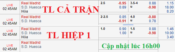 CHỐT KÈO TRỰC TIẾP trận Real Madrid vs Huesca (01h45)