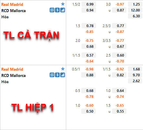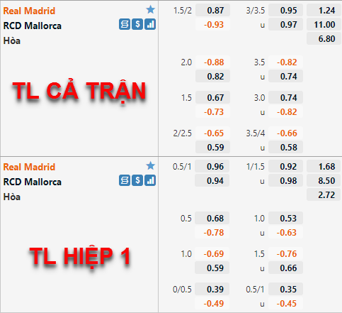 Tỷ lệ chấp của Real Madrid vẫn được duy trì ở mức 1 3/4 như thời điểm chúng tôi cập nhật hôm qua, nhưng điểm ăn của cửa trên đã được nhà cái châu Á điều chỉnh giảm khá nhiều. Trong khi đó bên phía tỷ lệ tài xỉu, mốc 3 hoà trước đây đã được thay thế bằng mốc 3 1/4 ở thời điểm hiện tại.