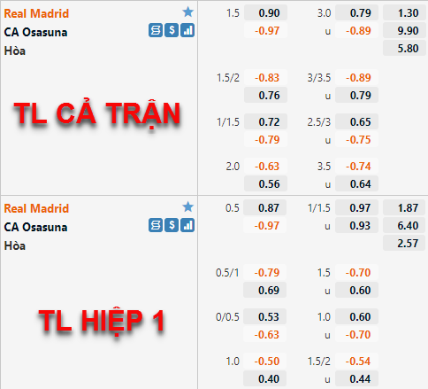 Tỷ lệ của Real Madrid có xu hướng tăng điểm thời gian vừa qua, mốc chính 1 1/2 ở lần chúng tôi cập nhật trước đây đã được nhà cái thay thể bằng mức 1 3/4 ở thời điểm hiện tại. Trong khi đó tỷ lệ tài xỉu của trận đấu lại có diễn biến trái chiều khi mốc 3 vẫn được duy trì là mốc chính nhưng điểm ăn cửa tài đã được điều chỉnh tăng.