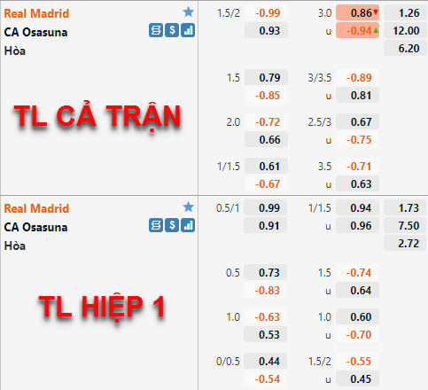 Diễn biến trên sàn giao dịch cho thấy thị trường vẫn đang nghiêng về dự đoán Real Madrid có khả năng vượt kèo trận này nhưng lại có phần ghi ngờ khả năng trận đấu diễn ra sôi nổi với nhiều bàn thắng. Nhưng theo chúng tôi hiện tại Osasuna không phải là đối thủ dễ bắt nạt khi họ đang duy trì ở vị trí thứ 6 trên BXH, giành 3 điểm không quá khó với Real Madrid nhưng để có một chiến thắng cách biệt 2 tới 3 bàn lại là chuyện khác. Có lẽ lựa chọn cửa xỉu sẽ là lựa chọn an toàn hơn.