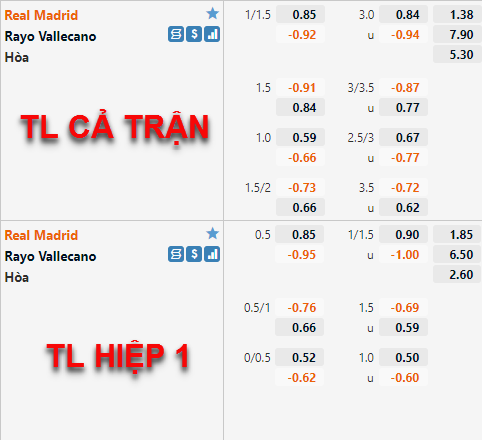 Tham khảo: Real Madrid -1/2 Hiệp 1