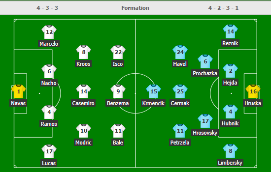 Không nằm ngoài dự đoán, sau khi không đá chính ở trận cầu cuối tuần qua, Benzema hay Bale và Kroos đều trở lại đội hình xuất phát của Real. Ngoại trừ Carvajal chấn thương và thủ thành Courtois ngồi dự bị thì sao trẻ Asensio cũng không có tên trong danh sách đá chính. Kèo chấp của Real vẫn là 3 hòa và điểm ăn không thay đổi quá nhiều.