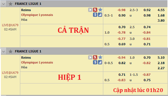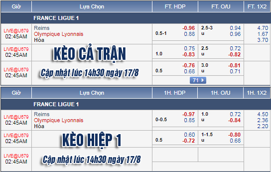 Không có nhiều biến động về tỷ lệ ở trận đấu sớm vòng 2 Ligue 1 giữa Reims vs Lyon. Kèo đội khách chấp 3/4 gần như bảo toàn giá trị lợi nhuận ở các lựa chọn đối lập. Diễn biến này có thể khiến nhà đầu tư e ngại vào cửa trên nhưng thực tế việc họ được đánh giá lên đến 3/4 khi phải xa nhà và trải qua mùa Hè biến động bất lợi về nhân sự là ghi nhận tích cực từ nhà cái.