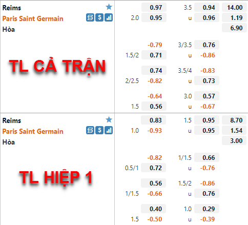 Tỷ lệ chấp của PSG vẫn được duy trì ở mức 2 hoà như thời điểm chúng tôi cập nhật trước đây, điểm ăn của cửa trên có được điều chỉnh tăng nhưng không quá nhiều. Trong khi đó bên phía tỷ lệ tài xỉu của trận đấu gần như không có biến động nào đáng kể, mốc chính của trận đấu vẫn được duy trì ở mức 3 1/2 như trước đây.