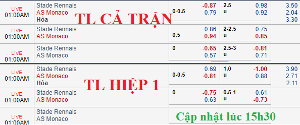 CHỐT KÈO TRỰC TIẾP trận Rennes vs Monaco (00h00)
