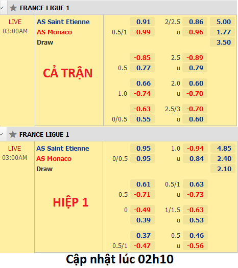 Trên sàn giao dịch châu Á là tỷ lệ khá ổn định dành cho Monaco. Thậm chí có thời điểm Monaco được kép lên chấp 3/4 cùng điểm ăn cân bằng giữa các lựa chọn đối lập. Điều này cho thấy thị trường và cả nhà cái dành sự tôn trọng đáng kể cho đại diện Công quốc.