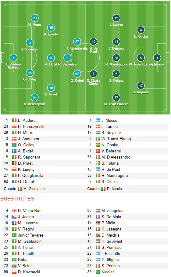 CHỐT KÈO TRỰC TIẾP trận Sampdoria vs Udinese (00h00)