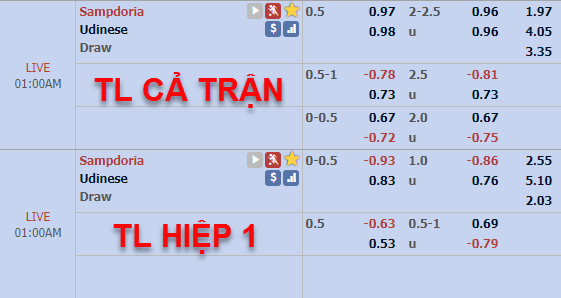 Sampdoria -1/2 cả trận