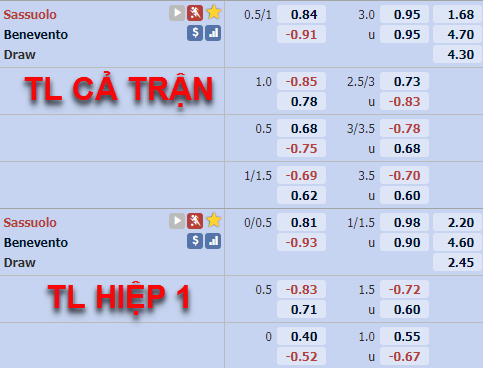 Các nhà cái châu Á đã có cái nhìn rất tích cực dành cho đội chủ nhà khi ban đầu đã niêm yết kèo chấp lên đến 3/4 khi tiếp đón Benevento. Diễn biến đến sát giờ bóng lăn khá ổn định khi điểm ăn dành cho cửa trên vẫn rất thấp so với chiều ngược lại.
