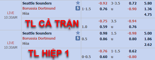 CLB của Đức tung vào sân đội hình không hề yếu, với những cái tên chất lượng thủ thành Burki, Toprak, Weigl, Gotze hay Alcacer. Trong khi đó, Seattle Sounders chơi với sơ đồ 4-2-3-1. Nhìn vào đội hình và tỷ lệ như vậy, nên chọn Dortmund và tài!