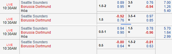 AEGoal.net chốt kèo trực tiếp trận Seattle Sounders vs Dortmund diễn ra lúc 09h30 ngày 18/7 sau khi dựa trên tính toán, chuyển động về kèo châu Á và đội hình ra sân của 2 đội.