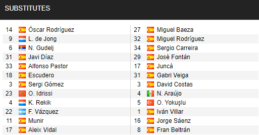 Đã không có sự thay đổi nào quá lớn trong đội hình ra sân của Sevilla ở trận đấu này khi những cái tên tốt nhất đều đã được HLV Lopetegui điền vào danh sách chính thức. Và với lực lượng như vậy, Sevilla đang cho thấy sự nhỉnh hơn so với Celta Vigo về mặt nhân sự ở trận đấu tới.