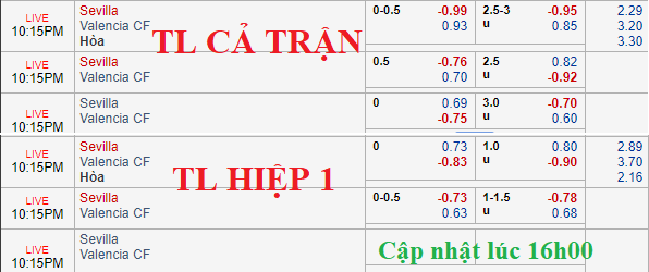 Trên sàn giao dịch châu Á, tỷ lệ của trận đấu vẫn được giữ ở mức chấp 1/4 của đội chủ nhà Sevilla nhưng mức điểm ăn của cửa trên đã được điều chỉnh tăng khá nhiều so với thời điểm chúng tôi cập nhật chiều nay. Đây là một dấu hiệu không tốt cho việc lựa chọn cửa trên trong trận đấu này.