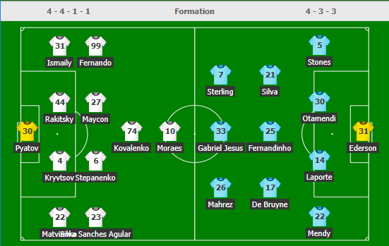 Shakhtar Donetsk: Pyatov; Matvyenko, Krivstov, Rakitskiy, Ismaily; Maycon, Stepanenko; Marlos, Patrick, Taison; Moraes