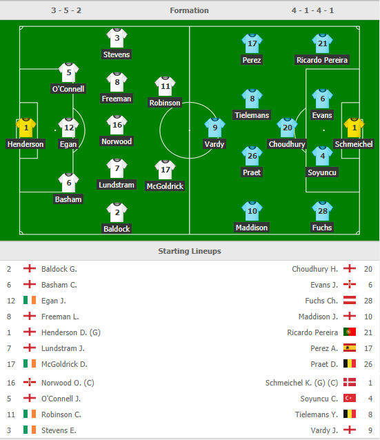 "Bầy cáo" vẫn có những nhân tố chất lượng như Vardy, Maddison hay Tielemans trong đội hình. Nhìn qua thì Sheffield Utd đá với 3 hậu vệ nhưng thực chất là 5 khi 2 tiền vệ cánh của họ vốn dĩ là những hậu vệ được dâng cao hỗ trợ cho tuyến trên. Cả 2 đội đều cho thấy sự thận trọng ở 2 vòng vừa qua và với việc tỷ lệ không có bước đột phá như vậy thì cửa xỉu tỏ ra sáng nước.