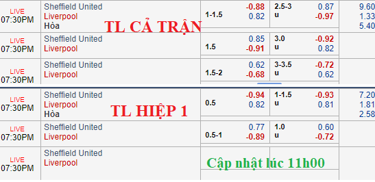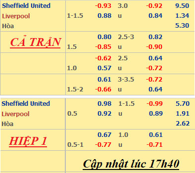 AEGoal.net chốt kèo trực tiếp trận Sheffield United vs Liverpool diễn ra lúc 18h30 ngày 28/9 sau khi dựa trên tính toán, chuyển động về kèo châu Á và đội hình ra sân của 2 đội.