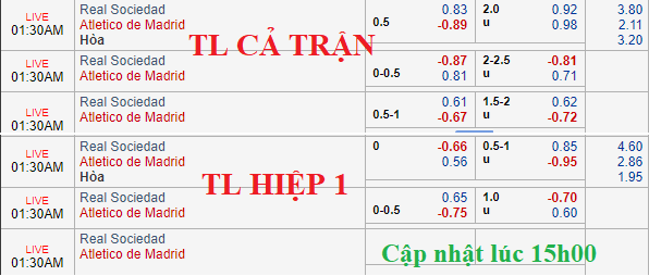 CHỐT KÈO TRỰC TIẾP trận Sociedad vs Atletico Madrid (0h30)