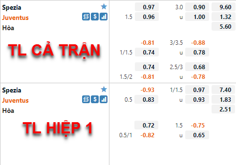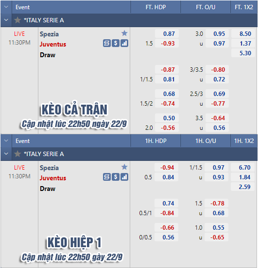 * Chốt kèo trận Spezia vs Juventus (23h30 ngày 22/09)