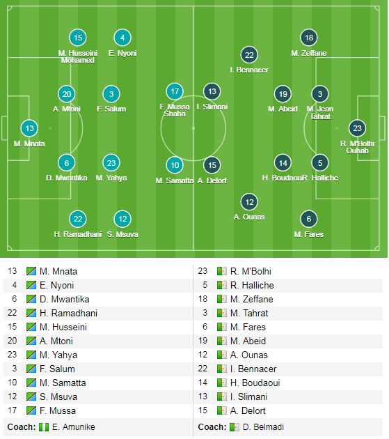 Không nằm ngoài dự đoán, ở trận này HLV Belamdi đã cất những trụ cột trong đội hình của Algeria lên băng ghế dự bị, thậm chí trong danh sách 11 cầu thủ ra sân thì chỉ có tiền vệ Bennacer và thủ thành M'Bolhi là 2 cái tên đã đá chính ở 2 lượt trận đầu. Bên cạnh đó, thay vì chơi với sơ đồ 4-5-1 như mọi khi, trận này Algeria đã ra quân với sơ đồ 4-4-2. Trong khi Tanzania ở trận này đã tung ra đội hình mạnh nhất của mình.