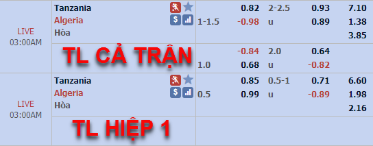 * Chốt kèo trận Tanzania vs Algeria (02h00)