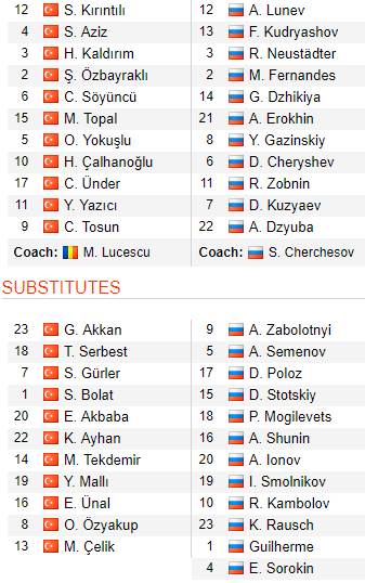 - Người ghi bàn cho Nga ở lần đối đầu mới nhất vào tháng 06 vừa qua là Samedov đã giã từ ĐTQG trong khi cầu thủ ghi bàn cho Thổ Nhĩ Kỳ là Yunus Malli vẫn có tên trong danh sách triệu tập lần này.