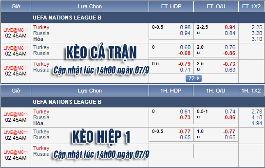 CHỐT KÈO trực tiếp trận Thổ Nhĩ Kỳ vs Nga, 01h45 ngày 08/9: Tin vào cửa trên