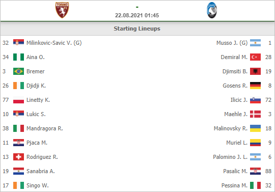 * Danh sách dự bị trận Torino vs Atalanta, 1h45 ngày 22/8: VĐQG Italia