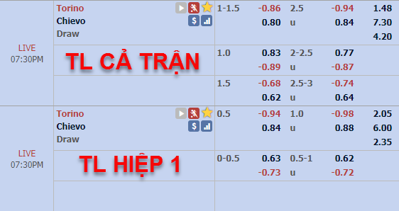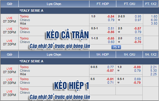 Tuy nhiên, những diễn biến trên sàn giao dịch châu Á lại đi ngược lại xu hướng khi kèo chấp -1 1/4 của Torino đã bị hạ xuống chỉ còn -1, thậm chí điểm ăn mã này còn đang ở mức bỏ khá sâu còn của đội khách lại khá thấp. Trong khi đó, mốc tổng bàn thắng cũng đã hạ từ 2 1/2 xuống chỉ còn 2 1/4 cùng điểm ăn khá cân bằng. Rõ ràng với diễn biến như vậy, Torino đang trở nên không đáng tin ở trận này, bên cạnh đó khả năng bùng nổ bàn thắng của trận đấu cũng không được đánh giá cao.