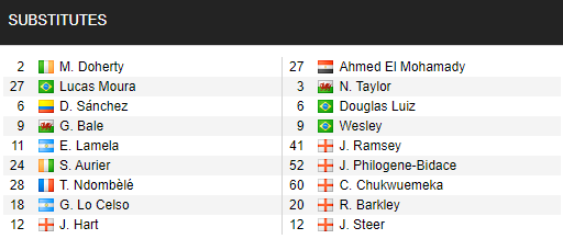 - Tottenham: Vắng Ben Davies (chấn thương); Khả năng ra sân của Gareth Bale và Serge Aurier còn bỏ ngỏ.