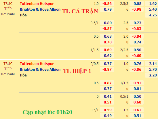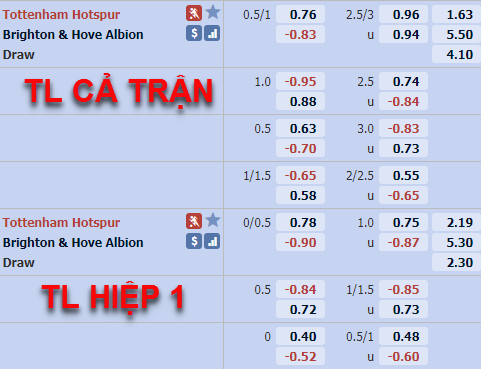 Sàn châu Á vẫn có sự dao động giữa kèo Tottenham chấp 3/4 (ăn ít) và chấp hòa (bỏ sâu). Được chơi trên sân nhà trước đối thủ bị đánh giá thấp hơn nhiều và lại có thứ hạng khác xa nhưng việc chưa có sức bật đáng kể về tỷ lệ khiến cửa Tottenham bị nghi ngờ ở trận này.