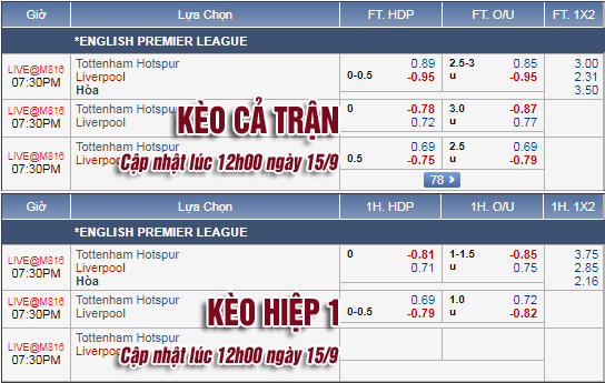 Về cơ bản, kèo tỷ lệ cả trận không có nhiều thay đổi so với thời điểm sáng nay, trong khi kèo tài xỉu vẫn giữ ở mức 2 3/4 nhưng giá Tài đã giảm đáng kể. Trước mắt cả hai đội sẽ là các trận đấu tại Champions League, nhưng có lẽ Pochettino hay Klopp không có ý định mang đến một trận đấu tẻ nhạt, họ luôn là những người luôn cháy hết mình vì mỗi trận đấu.